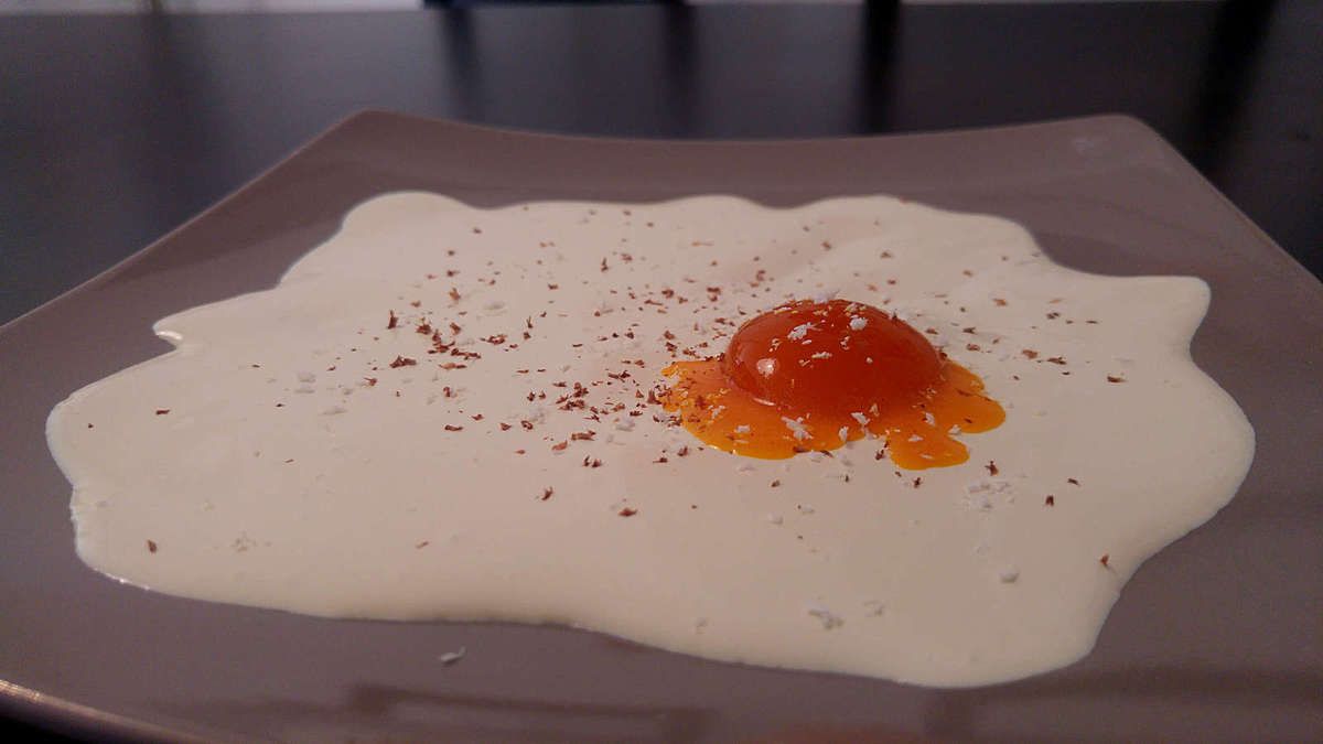 Du coup, plutôt que de faire un dessert à base d’œuf on va en profiter pour essayer de faire un dessert en trompe l’œil en copiant un œuf au plat.